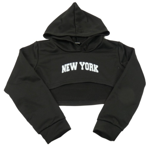 Černá crop sportovní mikina s nápisem a kapucí shein