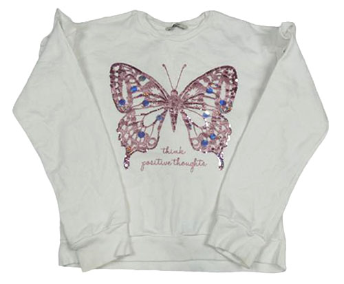 Bílá mikina s motýlem s flitry a volánky George