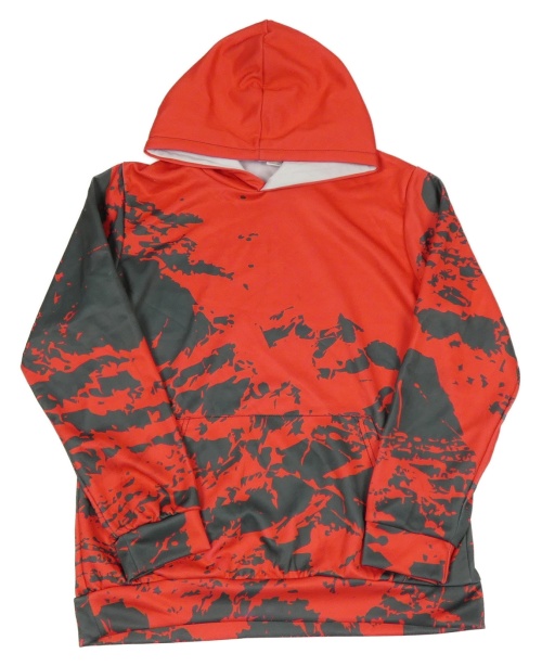 Červeno-šedá vzorovaná mikina s kapucí
