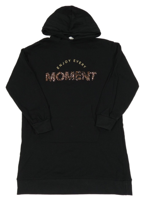 Černá šatová mikina s třpytivým nápisem a kapucí Mango