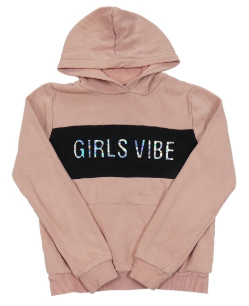 Růžovo-černá mikina s nápisem a kapucí C&A