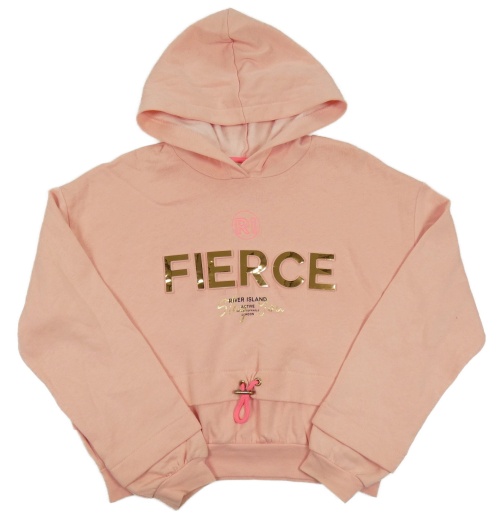 Světlerůžová crop mikina se zlatým nápisem a kapucí River Island
