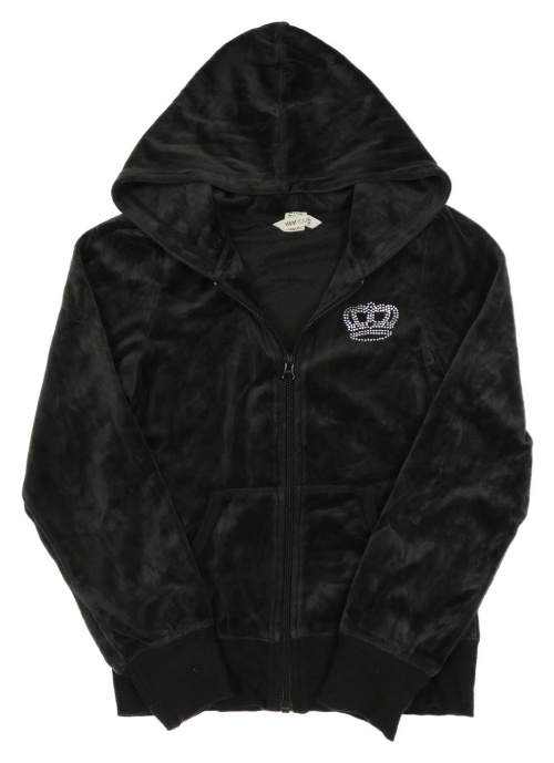 Tmavošedá sametová propínací mikina s korunkou z kamínků a kapucí H&M