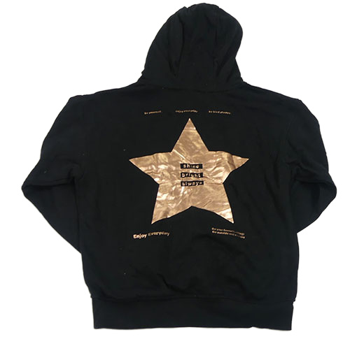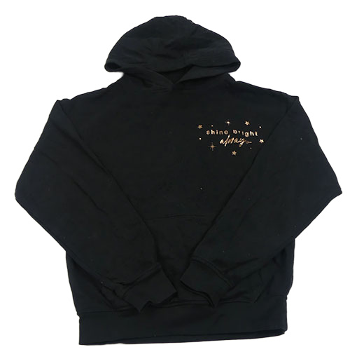 Černá mikina s nápisy a hvězdičkami a kapsou a kapucí George