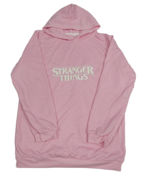 Světlerůžová mikina s nápisy - Stranger Things a kapucí