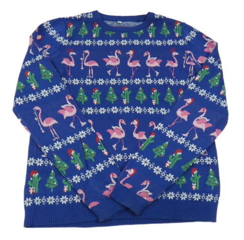 Modrý vánoční svetr s plameňáky a stromky M&S