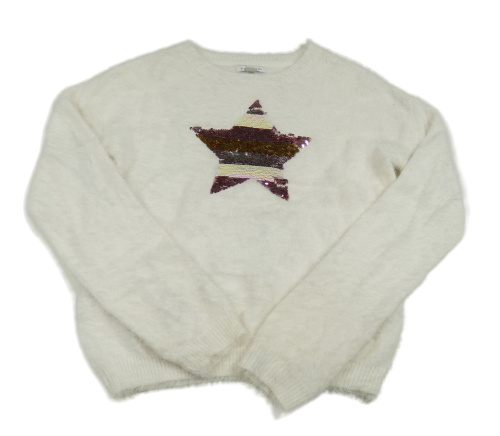 Bílý chlupatý crop svetr s hvězdou z flitrů Primark