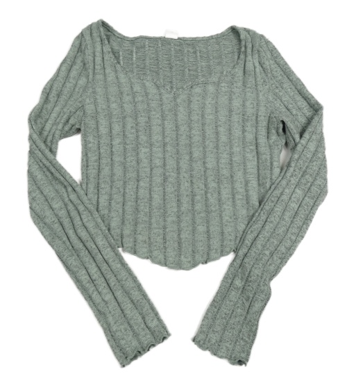 Šedozelené žebrované úpletové crop triko shein