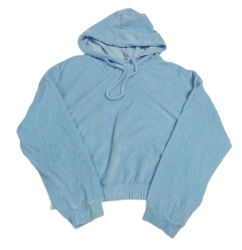 Světlemodrá sametová oversize crop mikina s kapucí CLOCK HOUSE