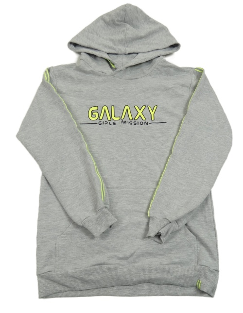 Šedo-limetková dlouhá mikina s nápisem a kapucí