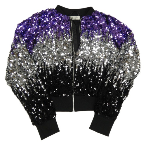 Fialovo-stříbrno-černá flitrová podšitá propínací crop mikina H&M