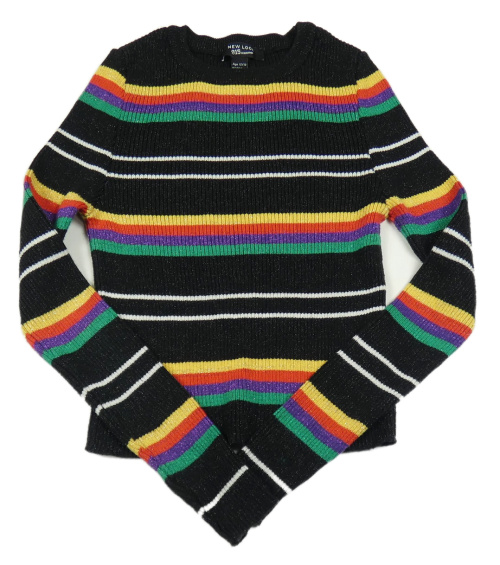 Černo-barevný pruhovaný žebrovaný crop svetr New Look