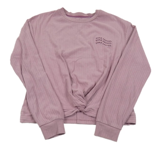 Růžové žebrované crop triko s nápisem a uzlem Nutmeg