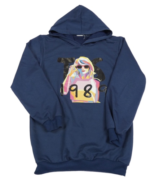 Tmavomodrá mikina s dívkou a číslem a kapucí