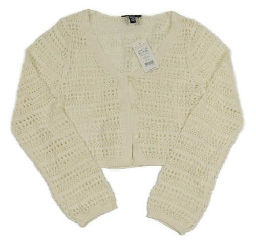 Nové - Smetanový perforovaný propínací crop svetr New Look