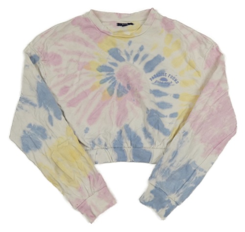 Bílo-barevná batikovaná crop mikina s nápisem Kiabi