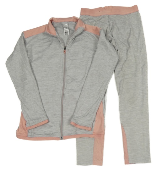 2 set - Šedo-růžová melírovaná sportovní funkční propínací mikina + tepláky Decathlon