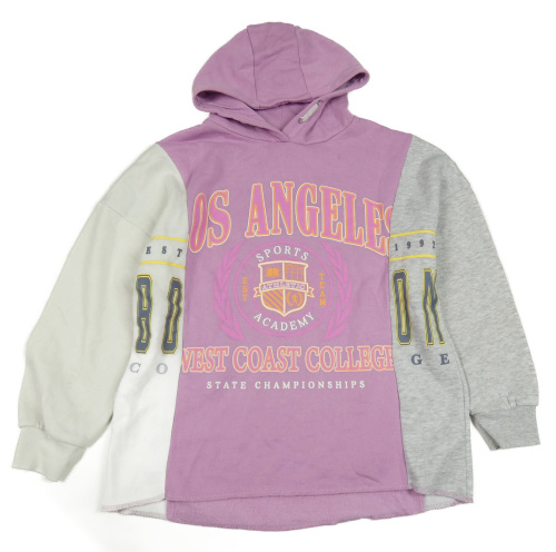 Růžovo-šedo-bílá mikina s nápisy a kapucí Primark