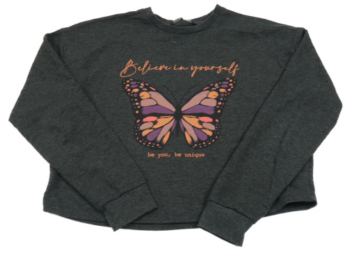 Tmavošedá melírovaná crop mikina s motýlkem George