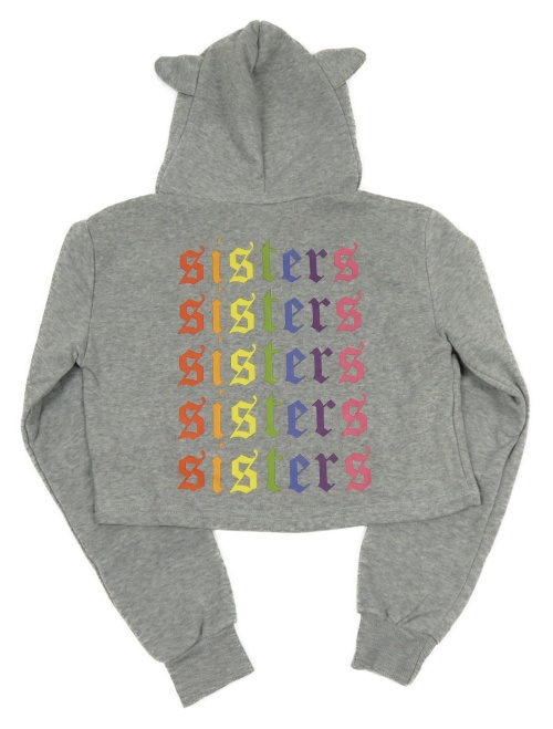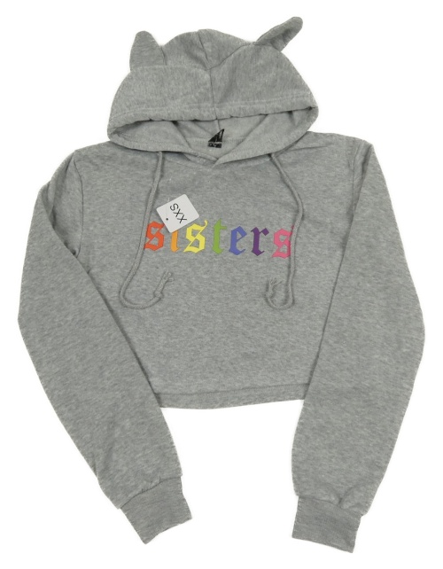 Nové - šedá melírovaná crop mikina s nápisy a kapucí