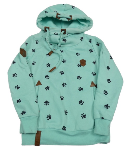 Mintová vzorovaná mikina s tlapkami a kapucí