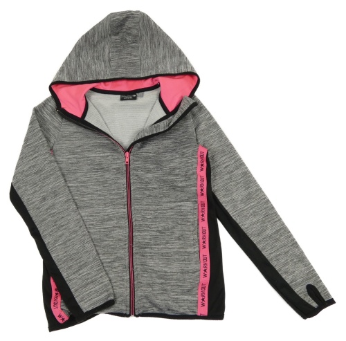 Šedá melírovaná sportovní propínací mikina s růžovým pruhem a kapucí