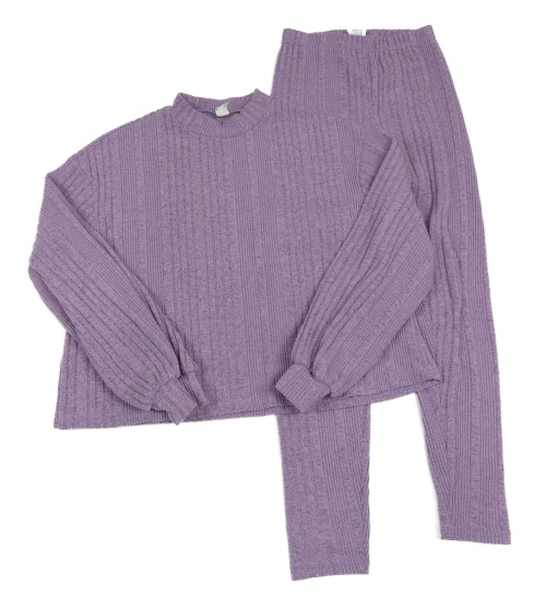 2set - Levandulová melírovaná žebrovaná úpletová mikina + legíny Shein