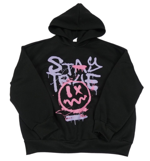 Černá mikina se smajlíkem s nápisem a kapucí Shein