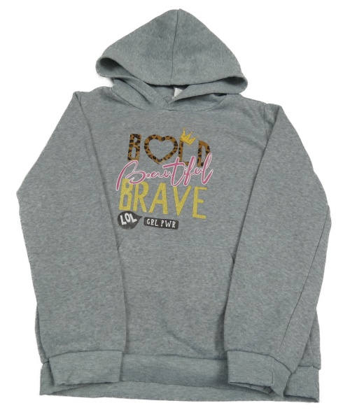Světlešedá mikina s nápisem a kapucí