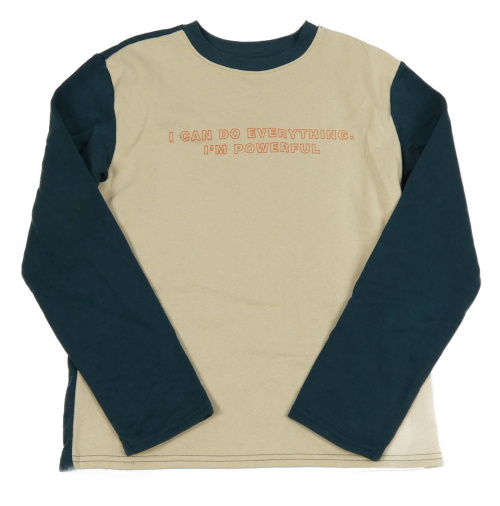 Světlebéžovo-tmavopetrolejová mikina s nápisy sinsay