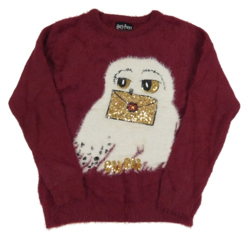 Vínový chlupatý svetr s Hedvikou s flitry - Harry Potter Primark