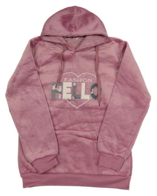 Starorůžová plyšová mikina se srdcem s nápisem a kapucí