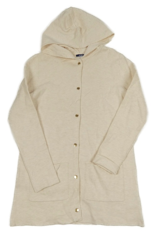 Nové - smetanovo-světlepudrový melírovaný propínací dlouhý svetr s kapucí OKaïdi