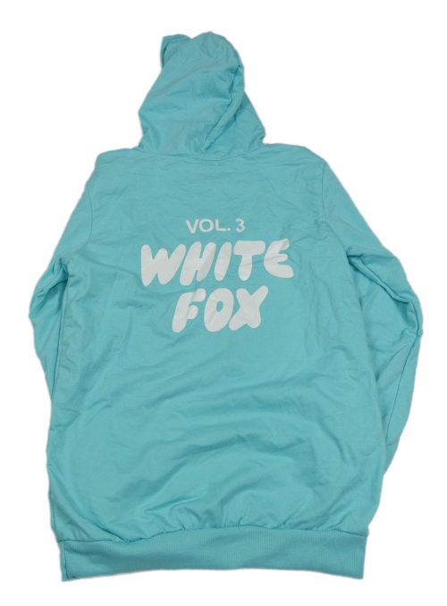 Nové - pomněnková mikina s nápisy a kapsou a kapucí