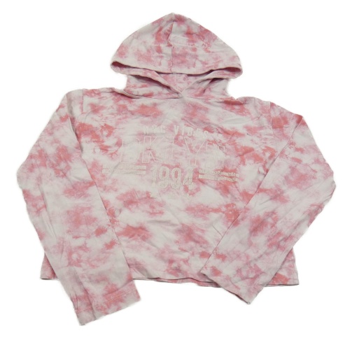 Růžovo-bílá batikovaná crop mikina s nápisem a kapucí