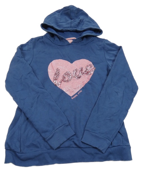 Tmavomodrá melírovaná mikina se třpytivým srdíčkem a nápisem z flitrů a kapucí POCOPIANO