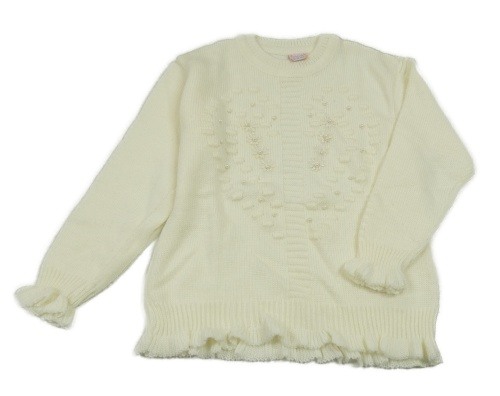 Smetanový pletený svetr se srdíčkem a květy a perlami a volánky