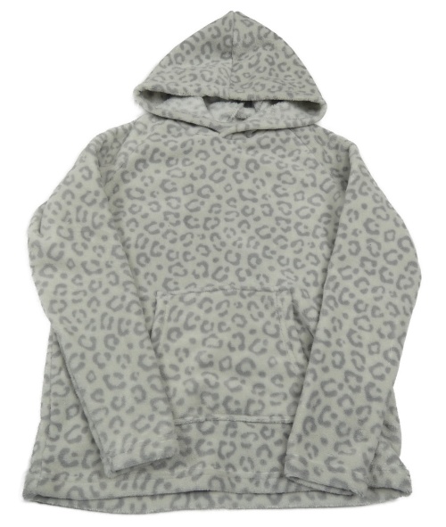 Šedá vzorovaná chlupatá domácí mikina s kapucí