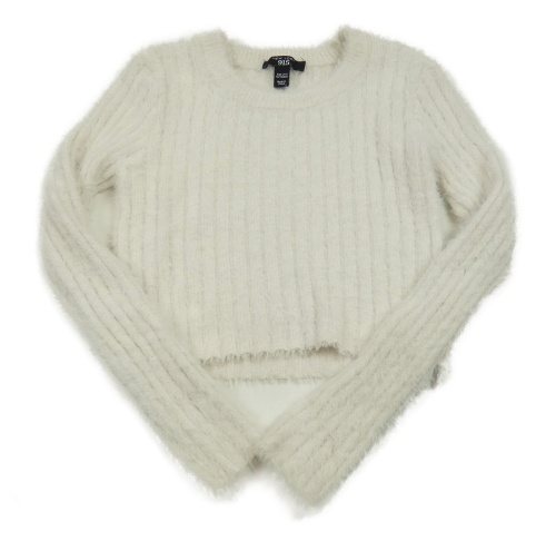 Smetanový žebrovaný chlupatý crop svetr New Look