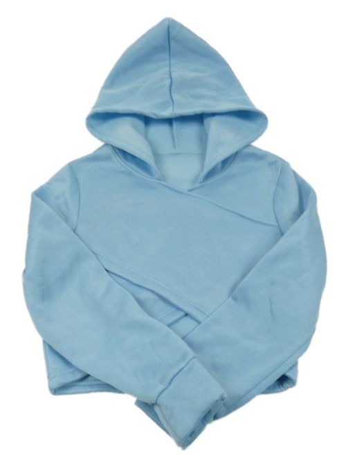 Světlemodrá teplá crop mikina s kapucí SHEIN