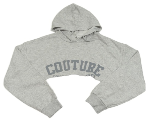 Šedá melírovaná crop mikina s nápisem a kapucí Matalan