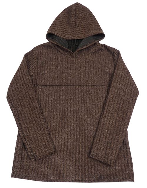 Tmavohnědý melírovaný žebrovaný úpletový svetr s kapucí