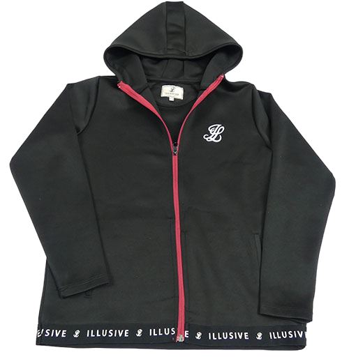 Černá propínací sportovní mikina s logy a kapucí ILLUSIVE