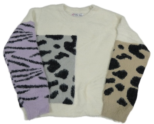Smetanovo-barevno-vzorovaný vlněný svetr
