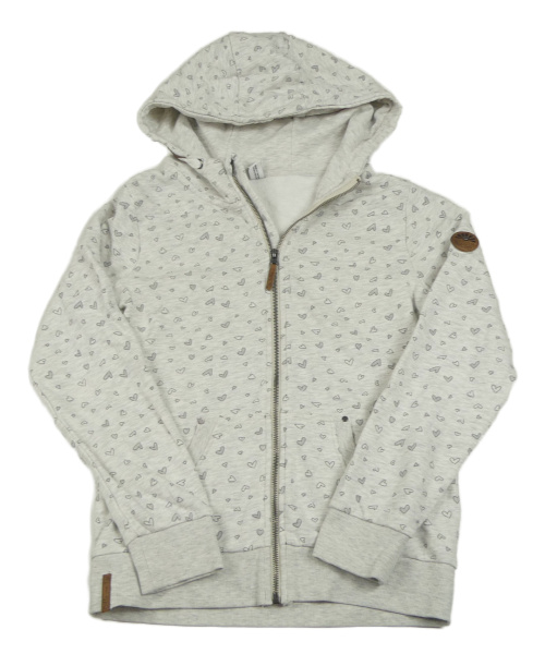 Světlešedá melírovaná propínací mikina se srdíčky a kapucí Yigga