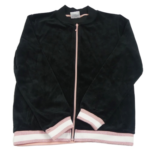 Černo-starorůžová sametová propínací mikina s bílým pruhem YIGGA