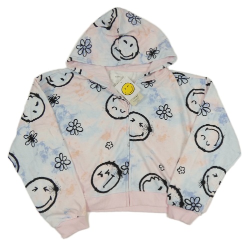 Nové - bílo-modrá crop propínací mikina se smajlíky a kapucí Reserved