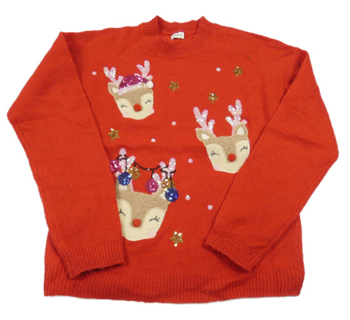 Červený svetr se soby a flitry F&F