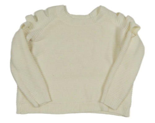 Smetanový žebrovaný pletený crop svetr s průstřihy