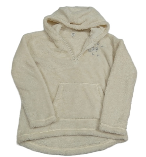Smetanová chlupatá mikina s hvězdami a kapucí GAP